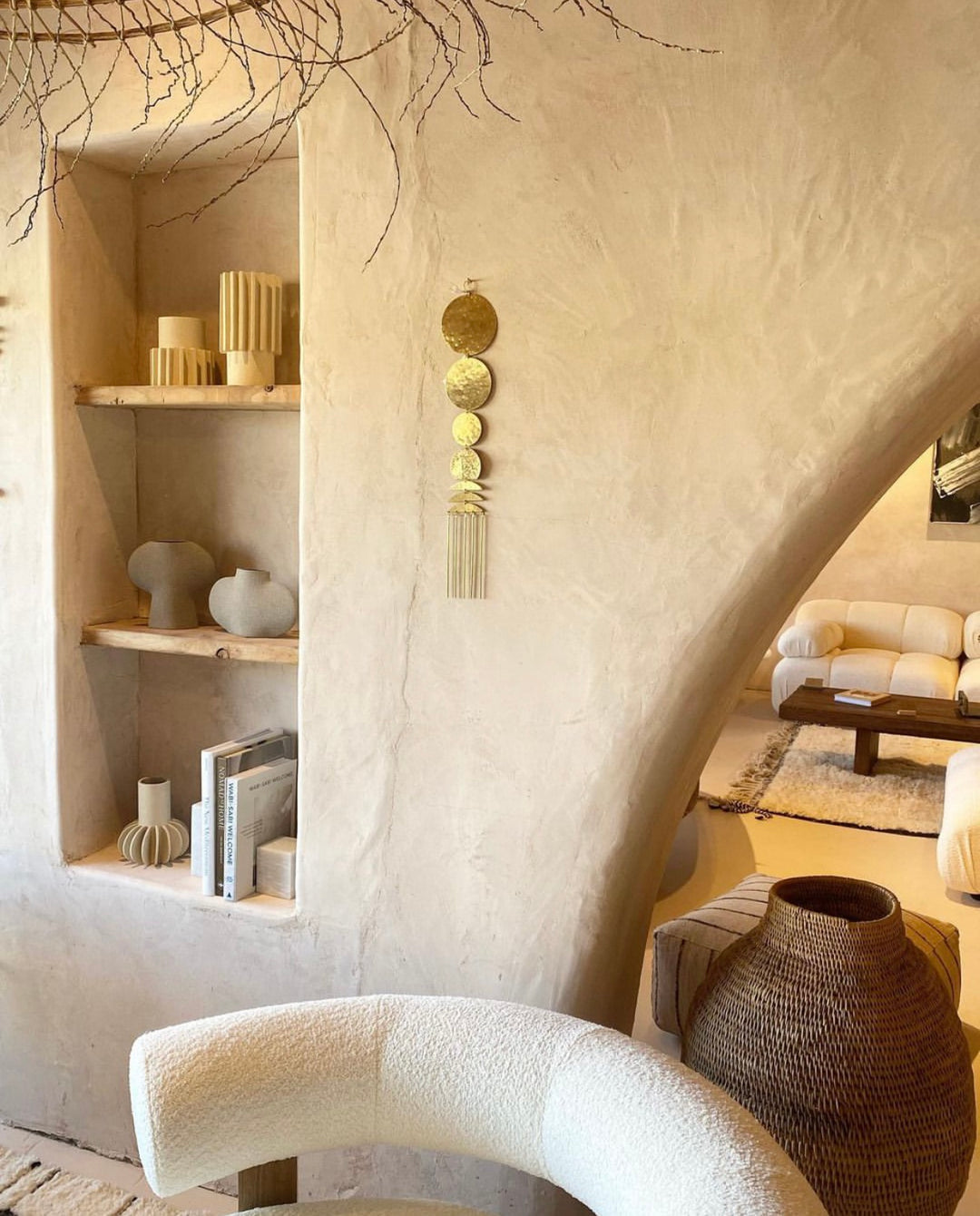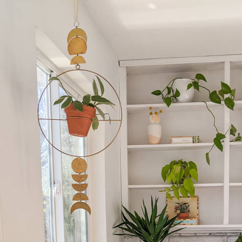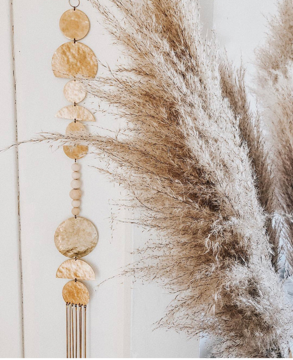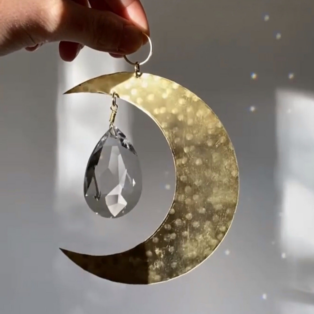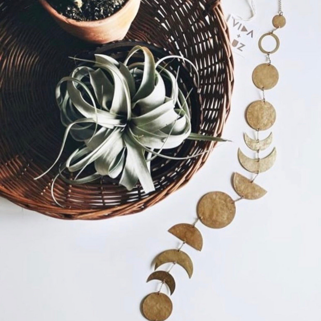 Driftwood + hand cut and hammered brass wall art/mobiles capturing celestial rhythms, ever changing light and reflections on water.