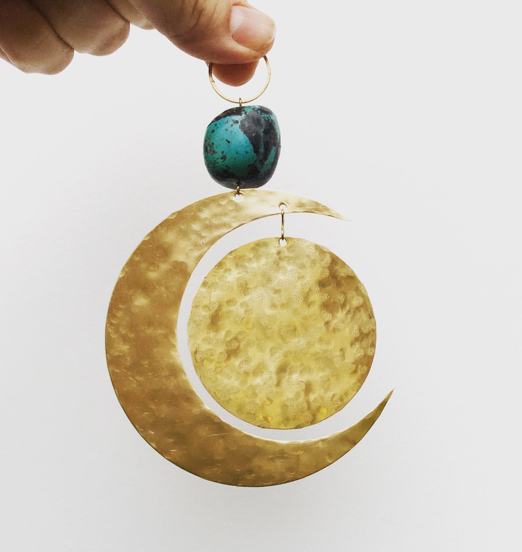 **Please note: our pieces are made by hand by our team of women artisans from hand-cut and hammered brass. Slight inconsistencies, imperfections and the natural beauty of brass and gemstones are what make our pieces unique.