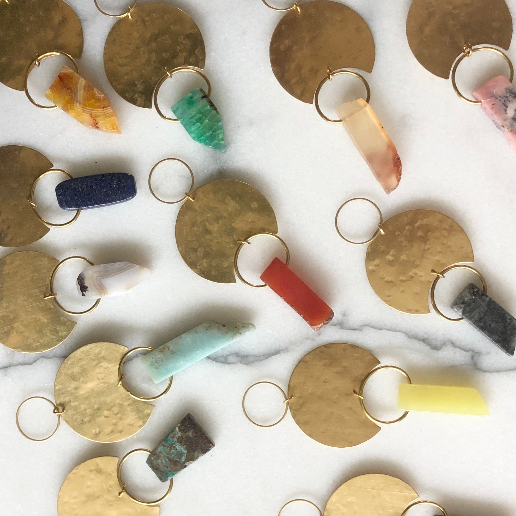 *Please note: our pieces are made by hand by women artisans from hand-cut and hammered brass. Slight inconsistencies, imperfections and the natural beauty of brass and gemstones are what makes each piece unique.