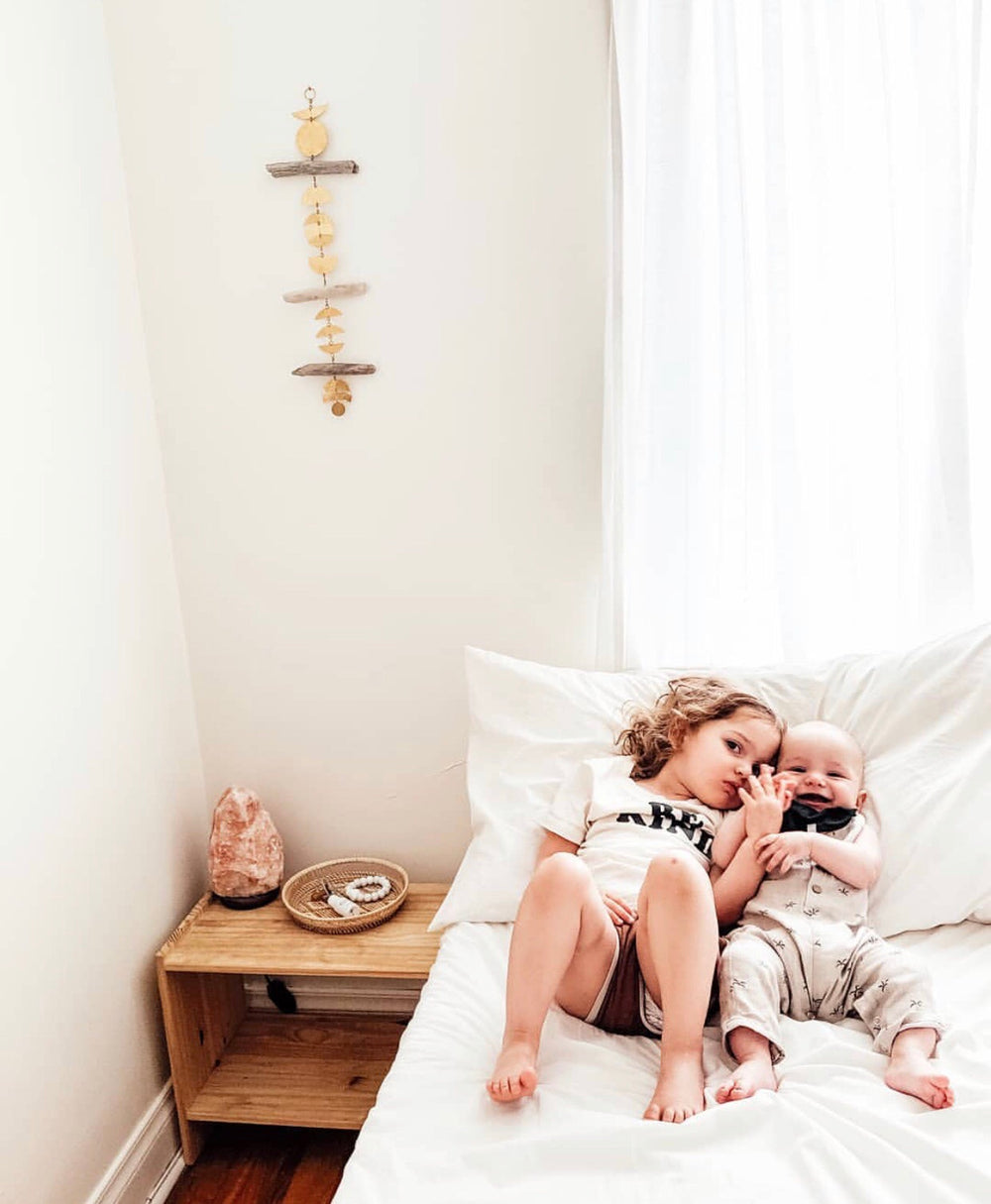 Important Note: Both the wood and brass are untreated, meaning they haven’t been lacquered, stained, or finished. For this reason, we don’t advise placing mobiles or wall hangings outdoors for extended periods.