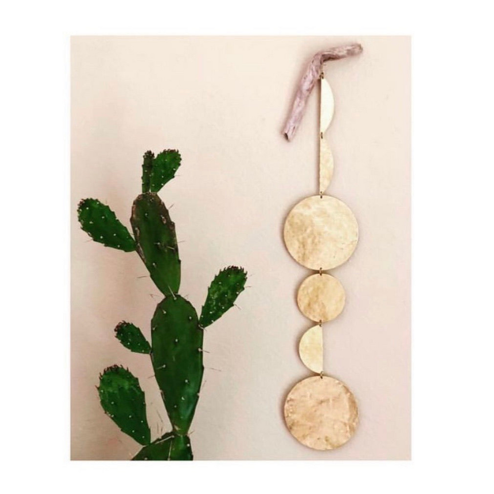 Important Note: Both the wood and brass are untreated, meaning they haven’t been lacquered, stained, or finished. For this reason, we don’t advise placing mobiles or wall hangings outdoors for extended periods.