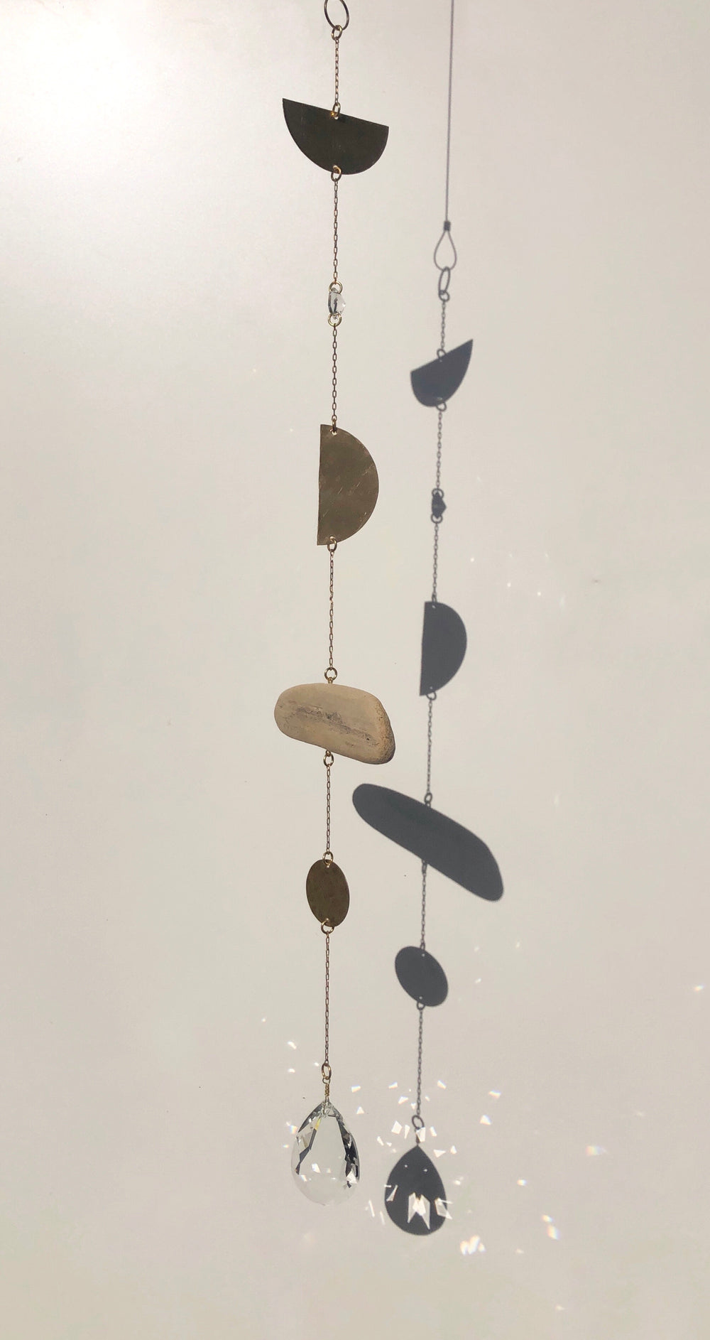 Important Note: Both the wood and brass are untreated, meaning they haven’t been lacquered, stained, or finished. For this reason, we don’t advise placing mobiles or wall hangings outdoors for extended periods.
