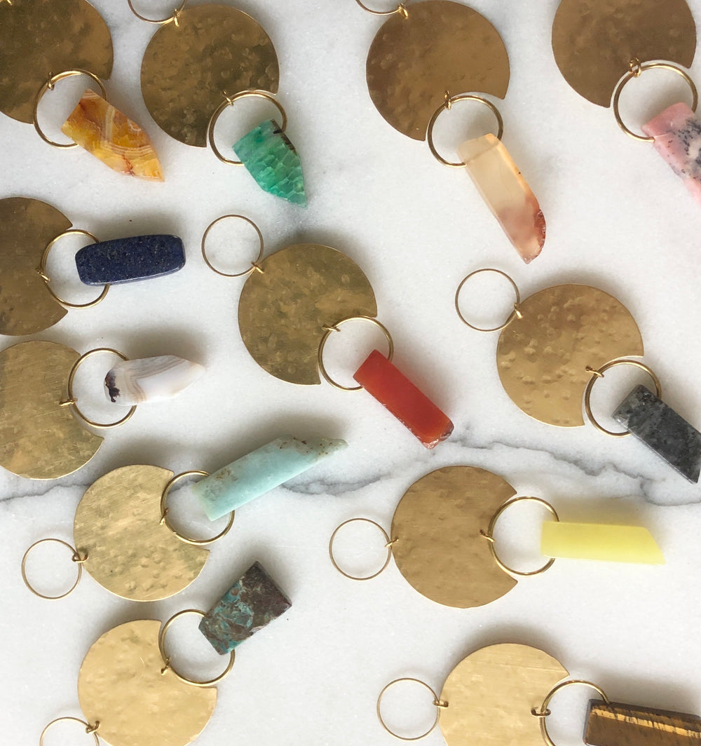 *Please note: our pieces are made by hand by women artisans from hand-cut and hammered brass. Slight inconsistencies, imperfections and the natural beauty of brass and gemstones are what makes each piece unique.