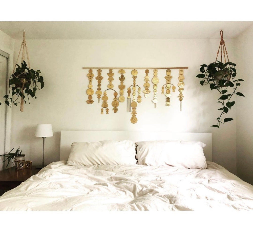 Important Note: Both the wood and brass are untreated, meaning they haven’t been lacquered, stained, or finished. For this reason, we don’t advise placing mobiles or wall hangings outdoors for extended periods.